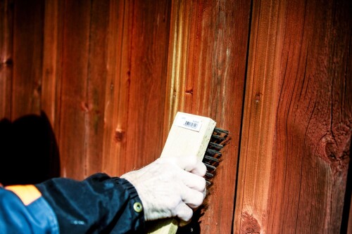 Den tillåter träet att andas och följer årstidsvariationerna. Och jag kokar min färg själv; färgpulver, järnvitriol, vete- eller rågmjöl och så vatten. Fram med stora grytan och så har du snart en färg som är fantastisk. På nordsidan har jag bara målat några enstaka gånger sedan 1979 och