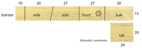 En ohyvlad bräda knappt 150 cm lång, 15 cm bred och 20-25 mm tjock är ett bra råämne och räcker till hela holken. Vill man ha ett tak som skjuter ut mer över kanterna, vilket förlänger livslängden, går det åt en något bredare stump (omkring 24 cm) till taket.