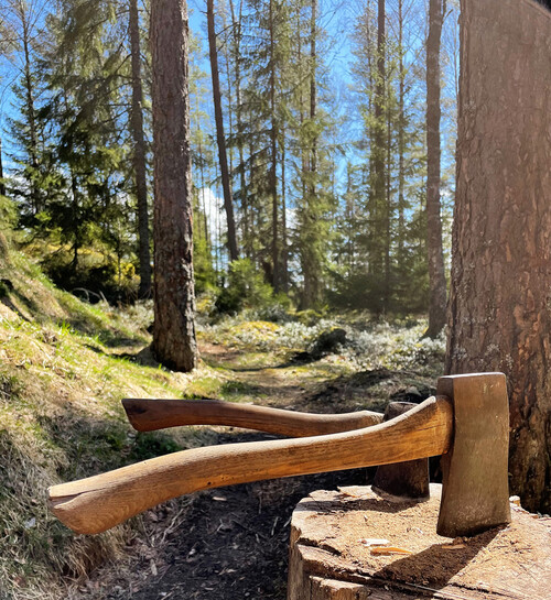 När platsen var vald var nästa steg att försöka hitta rätt typ av virke för stommarna och insidan av kojan.