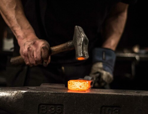– Steg för steg lär man sig smida en yxa. Alla deltagare arbetar vid en egen ässja, arbetsplats, i kurssmedjan. Arbetet leds av en erfaren smed som jobbar vid bruket. Under de här dagarna får man också med sig lite yxkunskap. Att använda en yxa handlar mycket om teknik, inte styrka, understryker Lovisa.