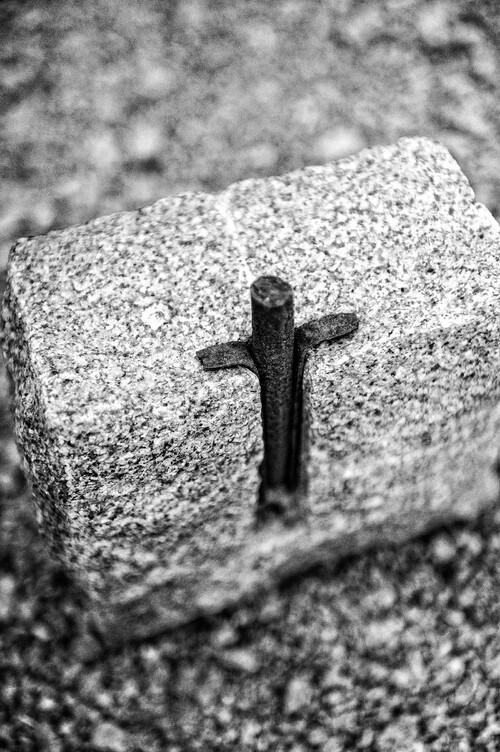 Spåren från stenhuggarens idoga arbete med borrmejslarna kan du ofta se på husgrunder som har stora block. Ett antal vita lodräta vita streck avslöjar att den är delad med bredkil.