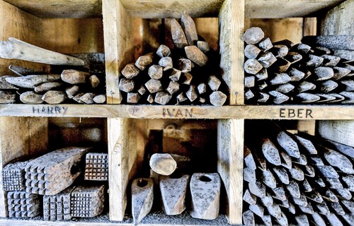 Stenhuggerimuséet bjuder på många olika fascinerande delar; i smedjan finns mängder av verktyg att vrida och vända på. Varje stenhuggare hade sina verktyg och i smedjan vässades och härdades mejslar, borr och spett.
