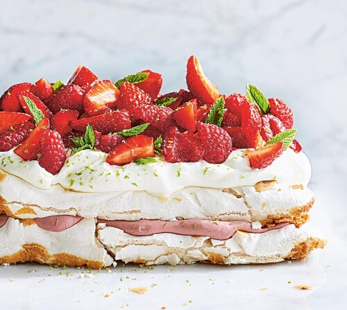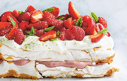 - Riv över zest från lime och toppa med jordgubbar, hallon och mynta.