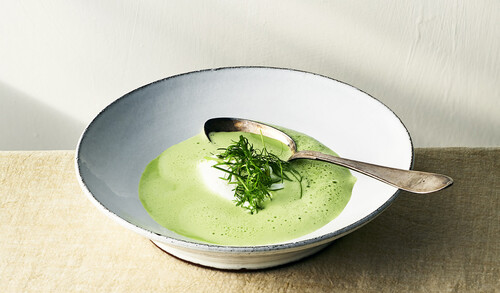 Ta upp stjärnanisen. Lägg nässlor och spenat i en mixer och häll i den reducerade soppan. Mixa slätt och smaka av med salt och citronjuice. Sila soppan om du vill och håll den varm fram till servering, eller kyl ner och värm vid servering.