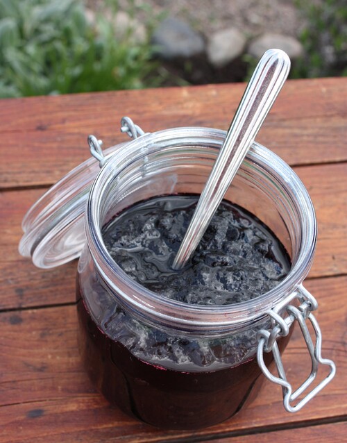 Bären ska vara riktigt mogna, annars gelear sig saften lätt. Skölj bären, men du behöver inte repa dem. Lägg dem i en kastrull med vattnet och låt dem koka under lock i 10 minuter.