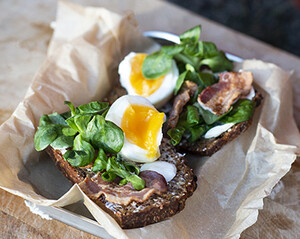 Inspiration / Mat och recept Röjarmacka med ägg och bacon Ägg och bacon på röjarns vis är busenkelt! Ta dig gärna tiden att baka din egen hästlimpa – ett bra bröd är hela grejen.