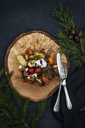 Tänd elden och vänta tills du har en trevlig glöd, placera stekhällen över glöden. Lägg i rapsolja och en klick smör – hällen är lagom varm när smöret slutar fräsa och blir tyst samt doftar lite nötigt. Stek morot och palsternacka i 6-8 minuter. Tillsätt skivad potatis och kantareller och stek på medelvärme i 5-6 minuter. Tillsätt övriga ingredienser förutom ost och persilja. Klicka i lite mer smör och stek älgfilen i skivor vid sidan om, salta. När filén ”blöder” är det dags att vända den, räkna med cirka 2,5 minut per sida. Avsluta med tärnad ost, persilja och persillade.