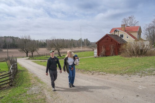 Paret har gjutit nytt golv, bytt tak och målat en av ladorna. De har investerat i solceller för att fånga upp solljuset och omvandla det till el. Plus att de har dragit in nytt vatten i huset och renoverat rum för rum. Väggarna pryds av vit pärlspont och tapeter i gammaldags stil. De har bevarat vackra dubbeldörrar och i vardagsrummet glittrar en kristallkrona i taket. Ett UNO-spel ligger utspritt över vardagsrumsgolvet tillsammans med leksaker och en lära-gå-vagn. Spår av sonen Helge, snart ett år.