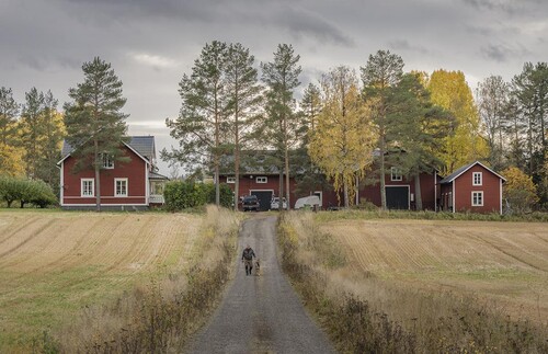 Den rödmålade gården som Sven-Erik tog över ligger omgiven av åkrar och granskog i det lilla