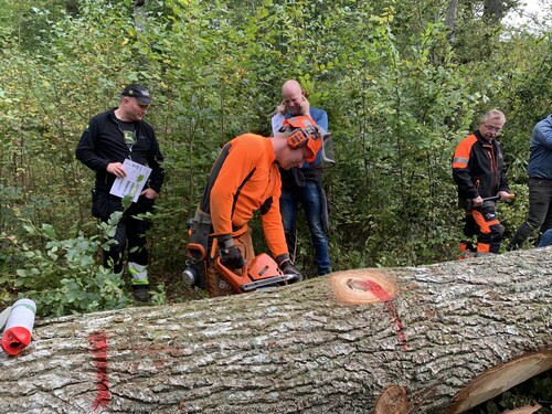 Övningsplatsen för dagen var förlagd till ekskogarna utanför Olofström. Just på den här avverkningen skulle moderträden avverkas för att lämna utrymme till den underväxande föryngringen som främst bestod av ek och bok, men också en och annan avenbok.