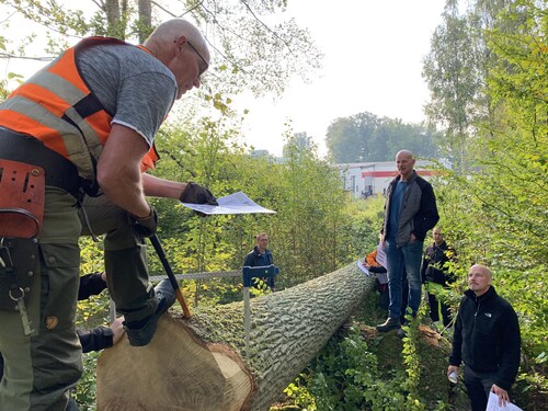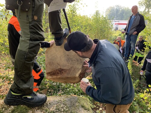 Dagen till ära hade Sydved bjudit in Gunnar Arvidsson från Österbymo Hardwood och Olle Jardén från Biometria som till vardags arbetar på sågverket och mäter ektimmer. Tillsammans med inköpare och entreprenörer blev det mycket givande diskussioner om hur ekstockarna ska kapas.