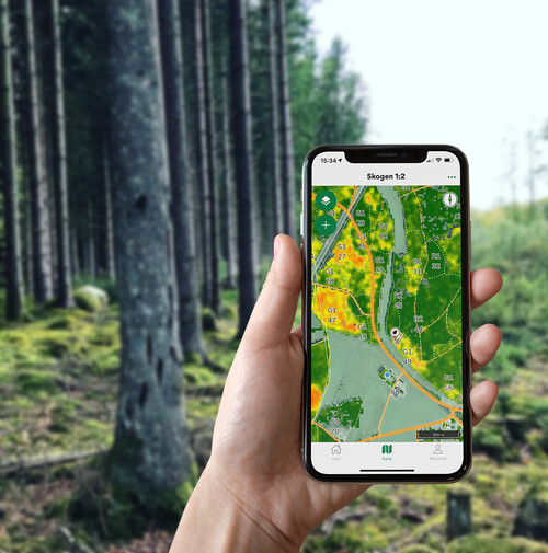 – När du är ute i din skog så utgår du från kartan som finns i appen. Bland de olika kartlager som finns hittar du ett lager som heter ”Riskindexkarta granbarkborre”. Den kartan visar områden med den typ av skog där sannolikheten för angrepp är störst, ju rödare det är i den kartan desto attraktivare är skogen ur granbarkborrens synvinkel. Så kartan visar inte var det finns angrepp, utan bara den typ av skog som granbarkborrarna gillar att föröka sig i. När du hittar angripna träd så markerar du enkelt platsen med insektsskada, och om du vill kan du också göra en egen notering.