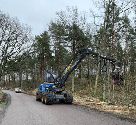 För att undvika spårbildning så har vi även manuell kraft på plats som fäller svåråtkomliga träd så att skördaren enkelt kan nå träden.