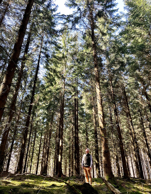 Aktivt skogsbruk, hög bonitet och bra tajming gör att Lars nu planerar för föryngringsavverkning för andra gången i den här trakten. När han var runt 20 år och hans föräldrar ägde fastigheten så fällde han själv den gamla granskogen. Nu ungefär 45 år senare står här avvecklingsmogen skog igen.