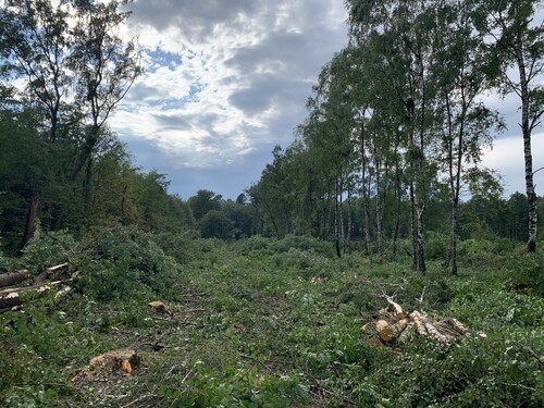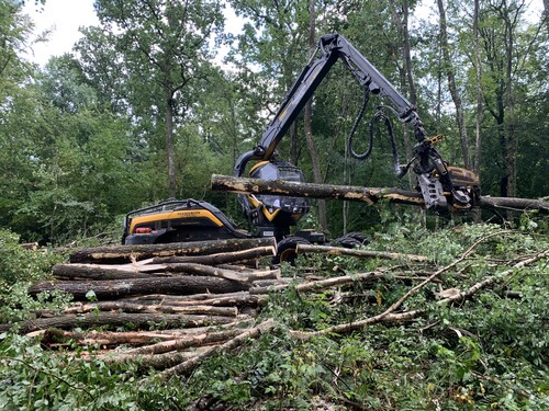 På bilderna ses en pågående slutavverkning av löv (asp och björk).