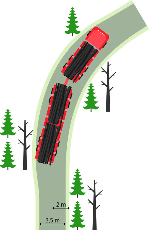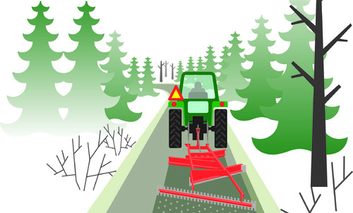 Är det rätt lutning på skogsbilvägen eller behöver den hyvlas av? Vägen bör ha en lätt lutning ut från mitten av vägbanan så att vattnet rinner ut i dikena i stället för att stanna på vägytan. Hyvla ut till dikesslänten. Hyveln ska skära ned under botten på de djupaste ojämnheterna. Om det behövs, fyll igen hjulspår och hål med lite extra grus. En gång om året kan vägen behöva sladdas; grusytan på vägen jämnas till samtidigt som man får bort eventuell växtlighet på vägen.