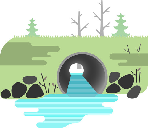 Kontrollera statusen på vägtrummorna. De kan slamma igen eller blockeras vid till exempel snösmältning, dikesrensning eller avverkning. Kontrollera trummans in- och utlopp samt trummans utloppsdike. Rensa upp vid behov. Är trumman väl tilltagen för att klara skyfall?