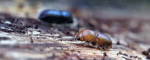 Granbarkborren övervintrar bara i marken.