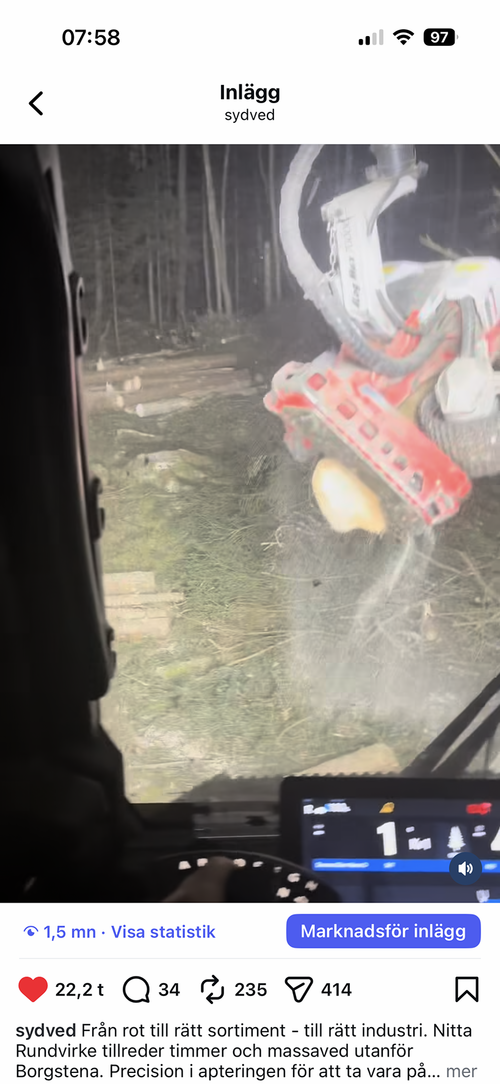 Sydved har varit aktiv på Instagram och Facebook i många år, och det här är det absolut bästa inlägget så här långt. Vi på Sydved tycker det är fantastiskt roligt att så många vill följa vår vardag i skogen.