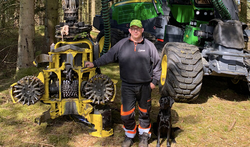 Peter Jönsson har kört skördare i nära 30 år, och detta blir den tionde skördaren han kör. Peter kör maskinen på enkelskift och räknar med att hugga runt 20 000m³fub om året.