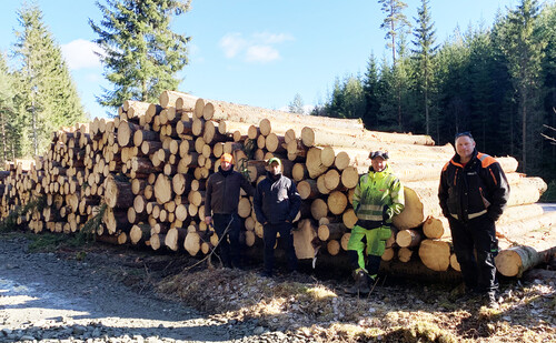 Nya certifieringsregler upprepades och diskussionerna tuffade på. Vi gick igenom produktionen och leveransplan för någon månad framåt. Till sist så kollade vi in apteringen och en diskussion fördes. Här en bild av en välta av gran, normaltimmer.