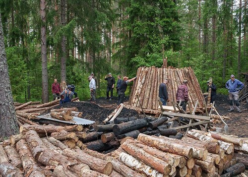 Under hela kolningen måste milan bevakas dygnet runt, ett arbete som sköttes av kolare förr i tiden som bodde intill i enkla kojor ute i skogen.
