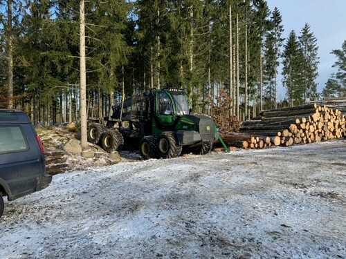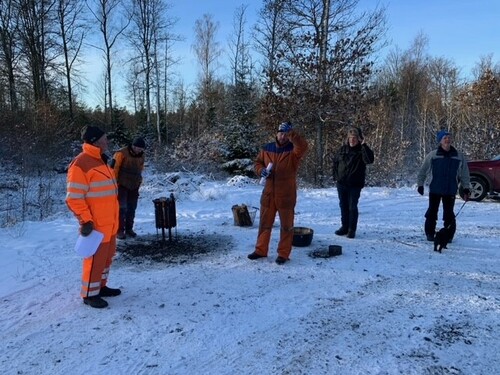 Väghults Skogsavverkningar avverkar skog i detta område till inköpare Ola Persson. Just idag lyckades vi pricka in en av vinterns vackraste dagar, med 5–6 minusgrader och strålande solsken. Ola grillar korv, Jonas från Väghult eldar i en eldkorg där vi kan värma oss. Detta är ett perfekt tillfälle för entreprenören (Väghult Skogsavverknignar) att ha en dialog med markägare och inköpare. Detta för att se vad som har blivit bra och vad kan vi förändra. På programmet står även en teoretisk genomgång av Sydveds nya häfte i generell naturvård.