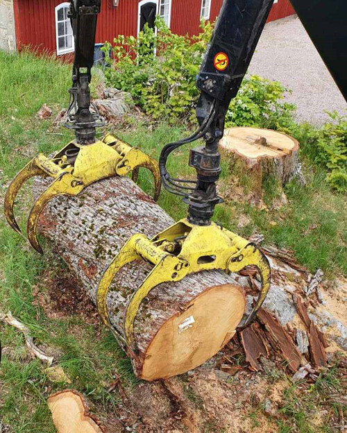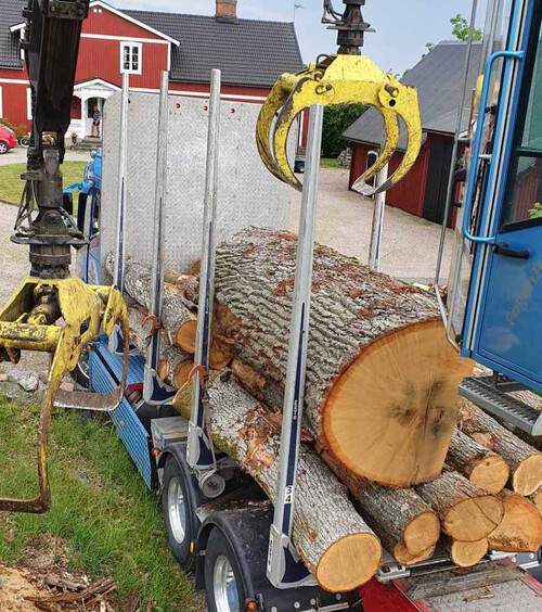 Lastbilschauffören som kör ekstock provade först men de var för tung så han vågande inte lasta själv och fick tillkalla hjälp, kranen lyfter 3 ton. Övriga ekstockar på lastbilen är mer normala stockar. Nu återstår att se vad volymen blir vid inmätning.