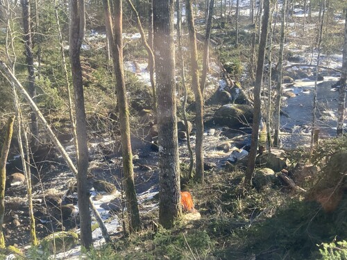 För att ge mer variation, ståndplatser för fisk och till viss del föda för insekter så har vi har skapat mer störning i vattnet genom att placera ut ved i vattnet.