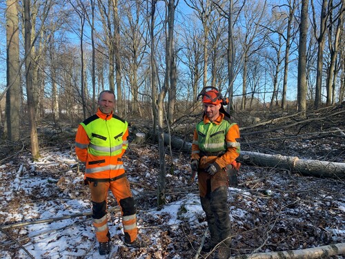 Vädret är perfekt, det är fruset så det går att fälla och även köra på delar av golfbanan. Lövbestånden runt golfbanan har varit i behov av gallring under en längre tid, så nu när det är kallt passar vi på.