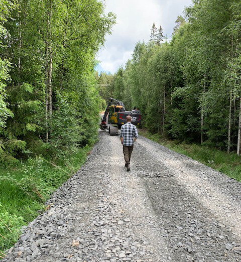 Det fanns en del utmaningar när man skulle göra vägen. En sådan var att det där fanns ett lite blötare parti, men med hjälp av fiberduk och nät så kunde man öka bärigheten innan grusningen utfördes.