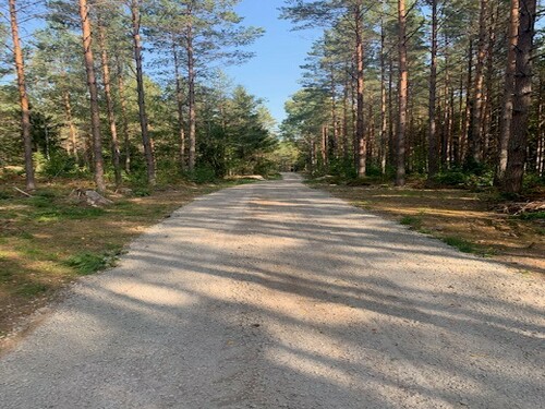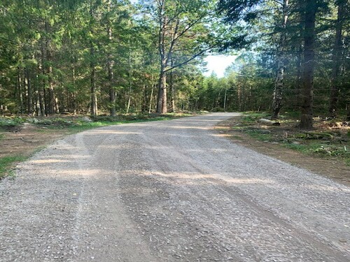 Här i skogarna utanför Påryd finns ett lysande exempel på en bra och pålitlig skogsbilväg som har trummor där det behövs och som nyligen har uppdaterats med grus.