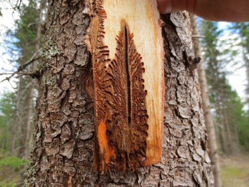 – Om du upptäcker en gran där barren har ramlat av och stammen är grå, så är trädet dött sedan länge, och granbarkborrarna har då också lämnat granen. Virkesvärdet i dessa träd är minimalt, men det biologiska värdet att lämna kvar träden i skogen är betydligt större, resonerar Anders.