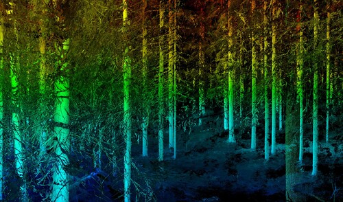 Genom att placera en laserskanner på ett stativ inne i skogen får man på kort tid många miljoner 3d-punkter som avbildar skogen. Skogliga variabler som stamdiameter, grundyta, stamvolym och trädhöjd