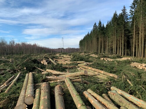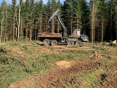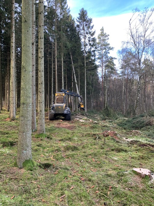 Efter ett par veckor med för årstiden skapliga transportförhållanden med en ganska mild tjällossning så har vi idag fått ett rejält bakslag med blötsnö och efterföljande regn. Då krävs det bra planering så att virkesbilarna har lämpliga objekt att köra på för att inte riskera skador på skogsvägarna.