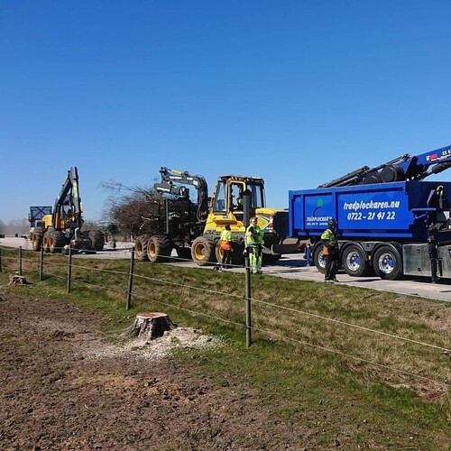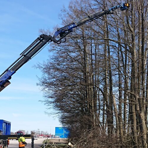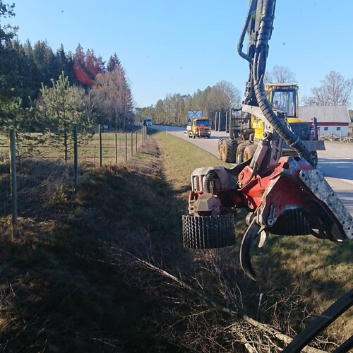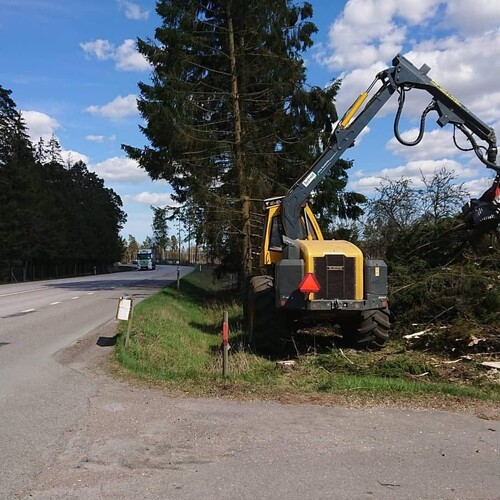 Det gäller att hålla tungan rätt i mun när TMA-bilar, kranbilar, arborister, huggare, skotare och skördare ska samarbeta på och bredvid motorvägen. Uppdraget är riskfyllt med mycket trafik som kör fort på motorvägen. Men allt går att lösa med bra kommunikation och skickliga entreprenörer.