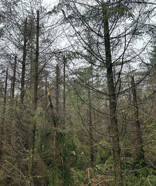 Detta är oerhört sorgligt att se och även se hur markägare påverkas av detta, både ekonomiskt och känslomässigt. Flera av bestånden är så pass skadade att vi troligen kommer behöva avverka dem inom några år. Dock så ville vi ge bestånden en chans dels för att sprida åldern på hyggena, dels för att hinna med det värsta i tid.