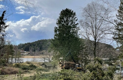 I början av april skedde en annorlunda avverkning på Stora Ösö mellan Uddevalla och Orust. Det är en ganska liten ö som de flesta som åker över Vindöbron inte kan undgå att lägga märke till . Ön har under många år dominerats av gran, som på sina håll inte mådde så bra. Sedan har det funnits inslag av tall och löv. Nu ville markägarna skapa en ljusare miljö och lyfta fram de för Bohuslän typiska kala klipporna. Helt enkelt skapa mer ö-känsla!