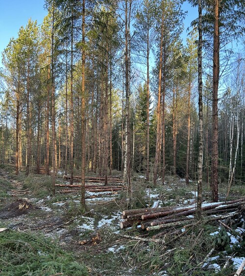 Sortimentet heter delkvistad ved och är ett bra komplement i den här typen av skogar. De grövre stammarna i beståndet går till massaved och klentimmer, som i en vanlig konventionell gallring.
