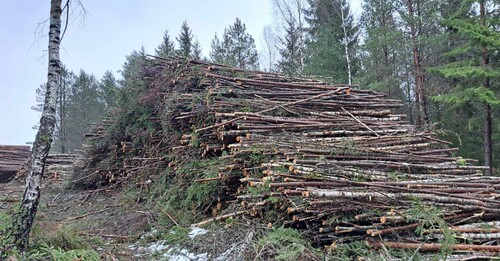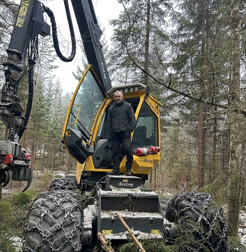 Det aktuella beståndet är cirka 30 år gammalt och har aldrig blivit röjt. I stället för att underröja skogen innan gallringen har Sydved tagit ut de klena stammarna till flis . Det har man gjort med hjälp av flerträdshantering på maskinen Eco Log 580.
