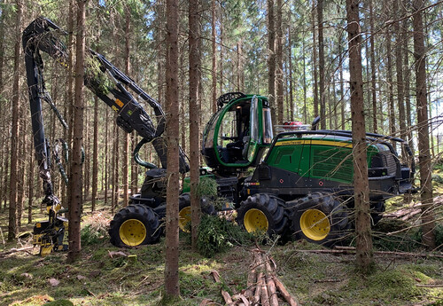 Krister Olofsson som är inköpare på distrikt Älmhult berättar att Kristoffer Bengtsson har förärats med en ny maskin till gallringsskogarna runt Älmhult och Osby.