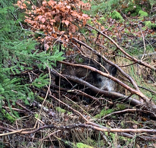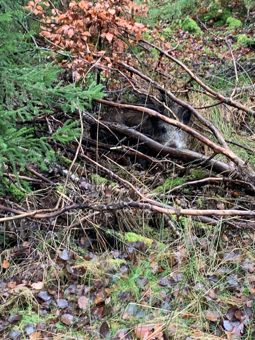 Inte sällan hör man då grisarna vandrar undan eller till och med slår med käftarna för att varna att kom inte hit (ofta sugga med kultingar). Men att komma så här nära hör till ovanligheterna.