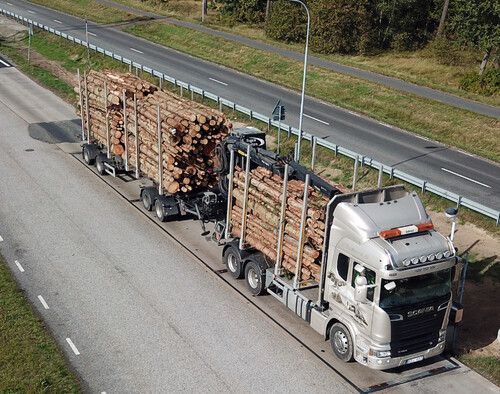 - Virkesbilen passerar sakta kamerorna, där bilder tas.
